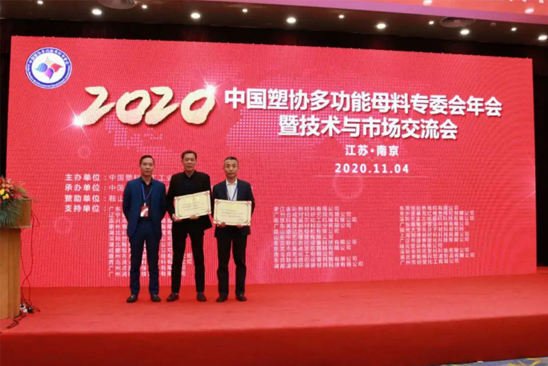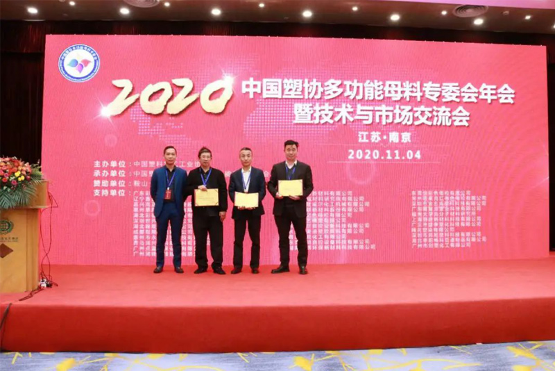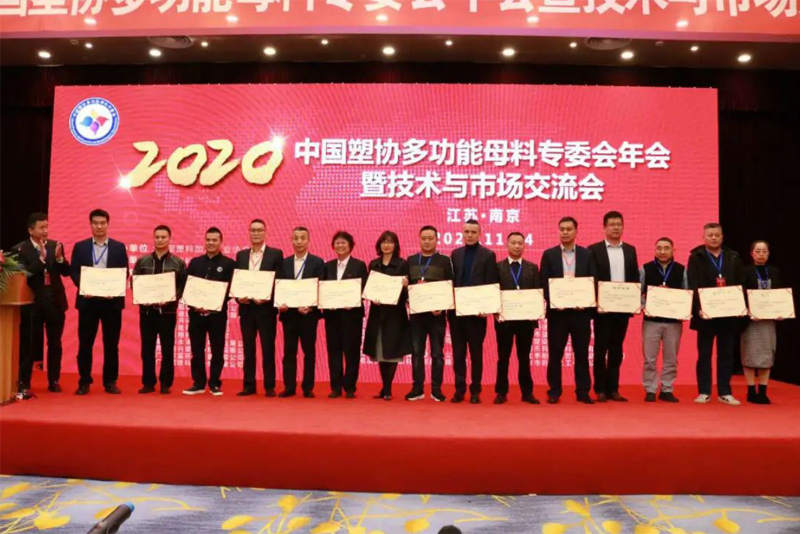 At the annual meeting and market exchange meeting of the Multifunctional Masterbatch Committee of China Plastics Processing Industry Association, Qingdao Rich Material Company, a subsidiary of Dawn Group, was awarded as an outstanding member unit of scientific and technological innovation in the 13th Five-Year Plan of China’s plastics processing industry(Multifunctional Masterbatch) Top ten enterprises, and the high starch-filled biodegradable functional masterbatch project won "the 13th Five-Year Plan" outstanding scientific and technological achievements in China's plastics processing industry. The company's General Manager Niu Maoping was elected as a member of the 4th Council of the Multifunctional Masterbatch Special Committee of China Plastics Processing Industry Association.