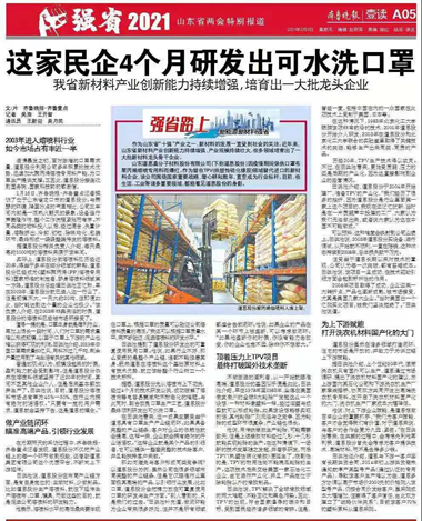 At the beginning of the new year, “Qilu Evening News” focused on Dawn with the theme of “This private enterprise developed washable masks within 4 months” based on “the innovative ability of our province’s new material industry continues to increase and cultivate a large number of leading enterprises” which aroused a strong response.