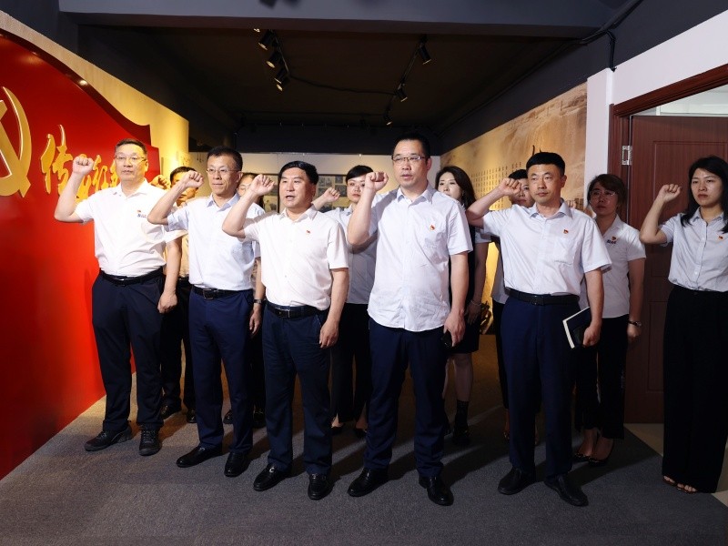 肖应东书记一行实地参观了三亿体育集团总部大厅、三亿体育传承红色基因教育基地,了解红色文化在三亿体育的传承与发展,从红色藏品中触摸峥嵘岁月,在红色故事中汲取强大的信仰力量。在红色文化墙前,于晓宁书记带领大家重温入党誓词,进一步坚定了初心使命。