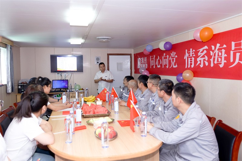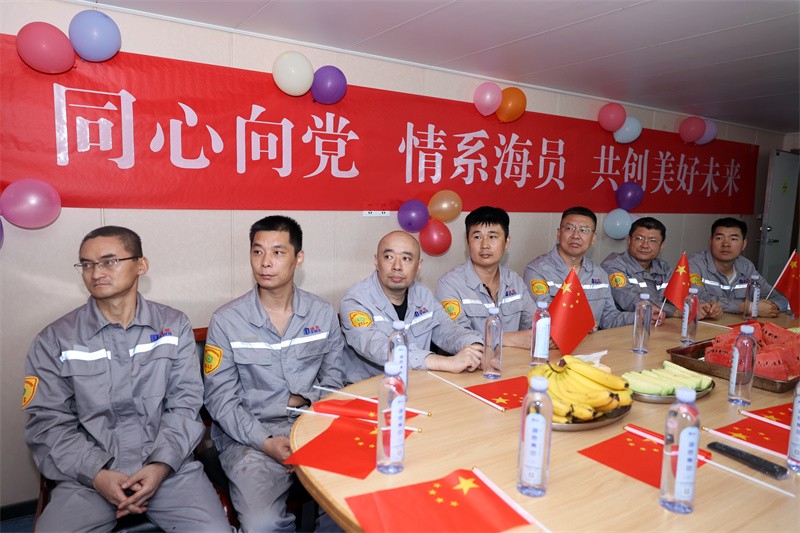 此前的一天,荣畅物流公司党支部书记、三亿体育国际物流公司总经理韩永卫携岸基人员登上“三亿体育17”轮,向船员兄弟们致以诚挚的节日问候和祝福并送上慰问品,开展“同心向党,情系海员,共创美好未来”主题活动,向中国共产党成立103周年、三亿体育集团成立33周年献礼。