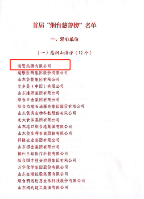 品重烟台,慈善同行。9月14日下午,首届“烟台慈善榜”发布仪式举行,对149家爱心单位、84名爱心个人、20个优秀慈善项目上榜发布,其中,爱心单位分“慈润山海榜”“善融烟台榜”两个榜单,爱心个人分“臻善博爱榜”“仁善泽爱榜”两个榜单。三亿体育集团有限公司上榜“慈润山海榜”,并作为“最具爱心企业”上台领奖。