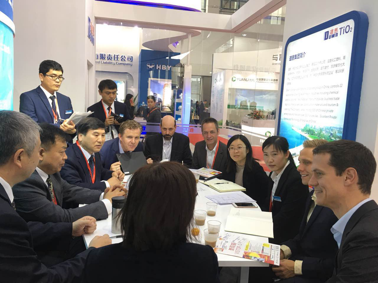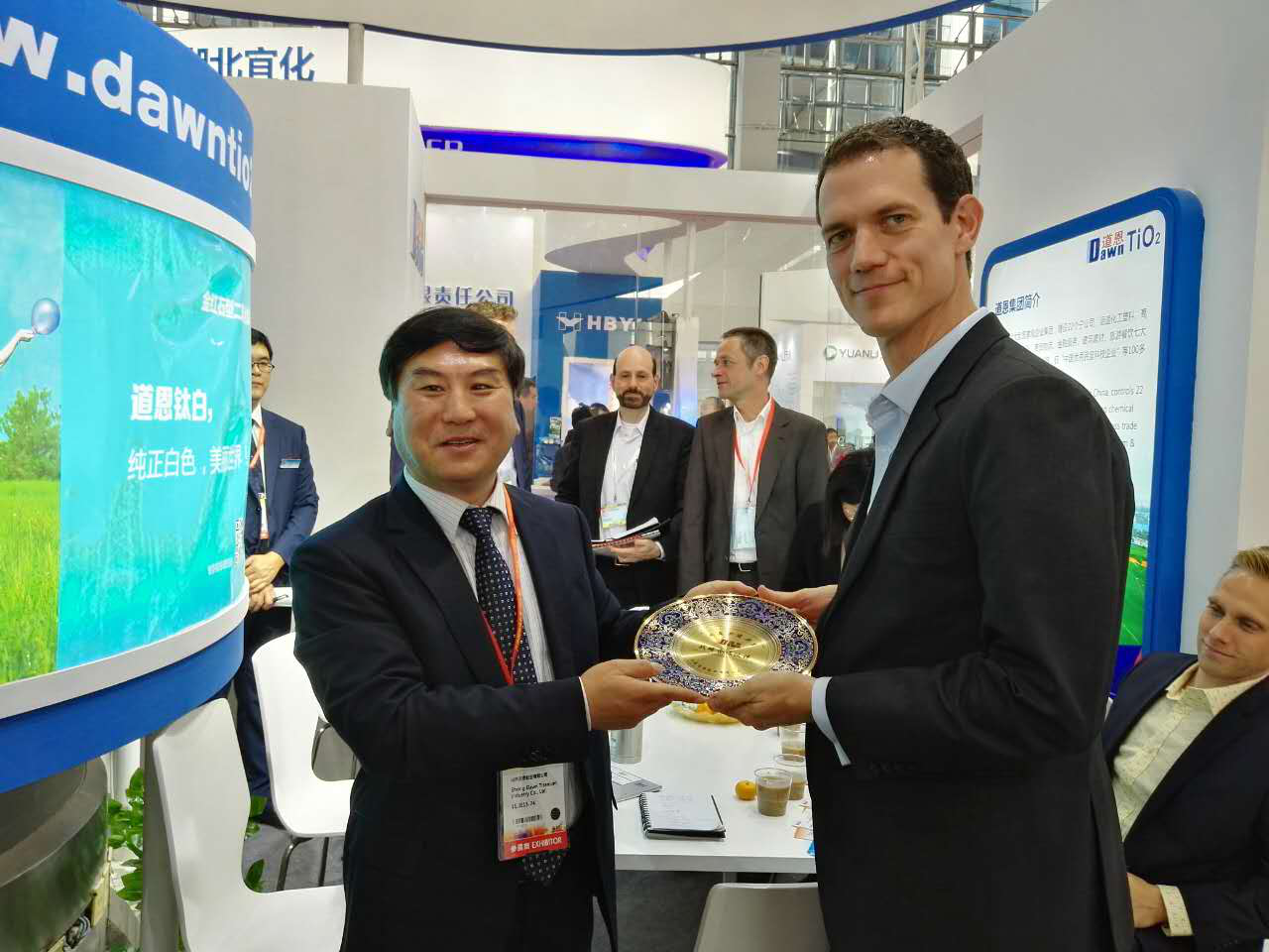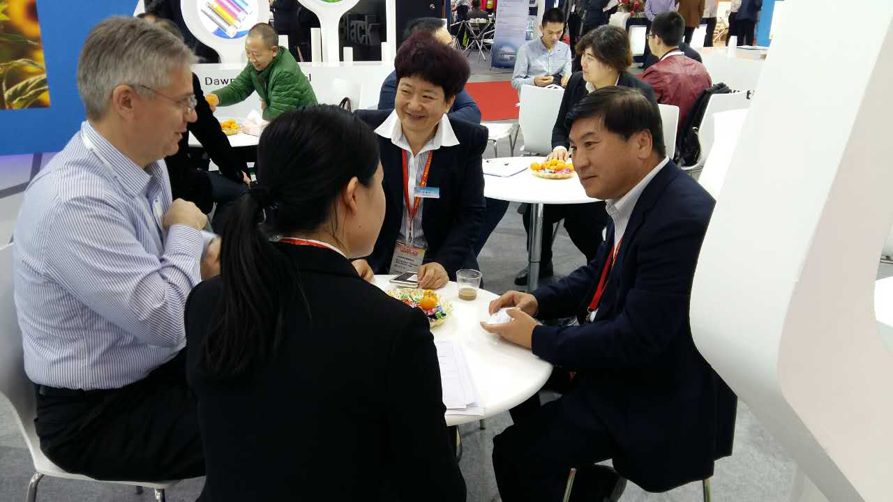 作为世界第三大油墨生产商,盛威科油墨有限公司全球采购总监NevenBarctel慕名访问三亿体育展台,于晓宁总裁与客人进行友好交流。双方就建立长期战略合作伙伴关系达成共识,共同研发油墨专用钛白粉,成为盛威科全球统一牌号。三亿体育集团常务副总裁索延辉用流利的日语和日本立邦洽谈2017年合作事宜,经过技术交流,最终确定明年第一季度订单。