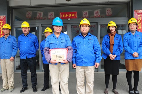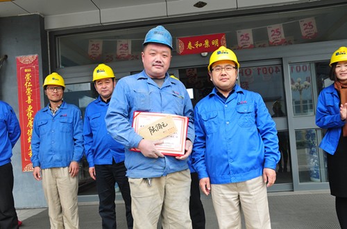 肖辉总经理为干燥操作比赛冠军孙霞颁奖