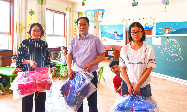 5月30日下午,三亿体育集团副总裁王可友将爱心书包送到了北皂前村幼儿园和小孙家幼儿园。孩子们收到特殊的节日礼物,十分开心,稚嫩的脸上洋溢着幸福的笑容。