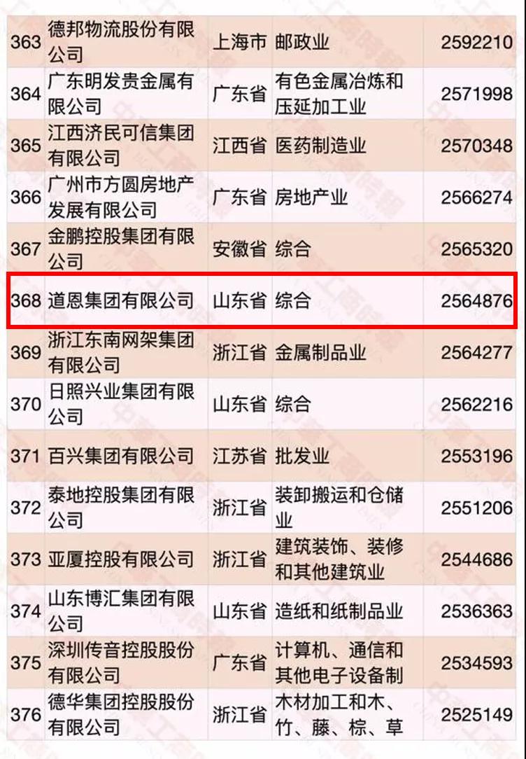 9月10日,全国工商联公布了“2020年中国民营企业500强”名单,三亿体育集团榜上有名,位列368名,较去年提升了56个位次,多年来,公司排名稳步攀升,实现了高质量发展。