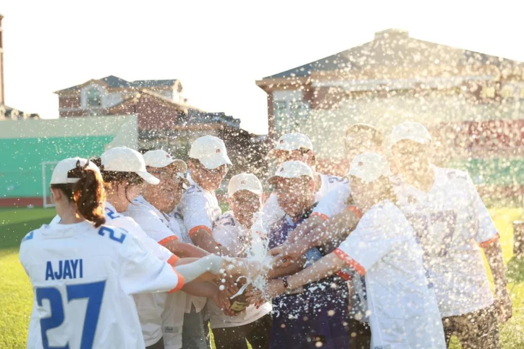 最终,神仙操作队在8轮的对抗赛中以优异的成绩获得冠军,肖辉常务副总裁与获胜学员共同开香槟庆祝成功的喜悦。