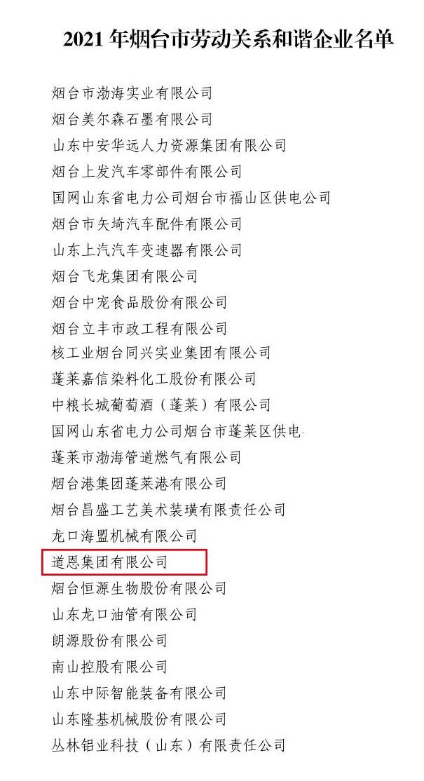 8月2日,烟台市公布2021年度烟台市劳动关系和谐企业、烟台市劳动关系和谐工业园区名单,三亿体育集团榜上有名,荣获“烟台市劳动关系和谐企业”称号。据悉,三亿体育集团所在的龙口经济开发区荣获“烟台市劳动关系和谐工业园区”称号。