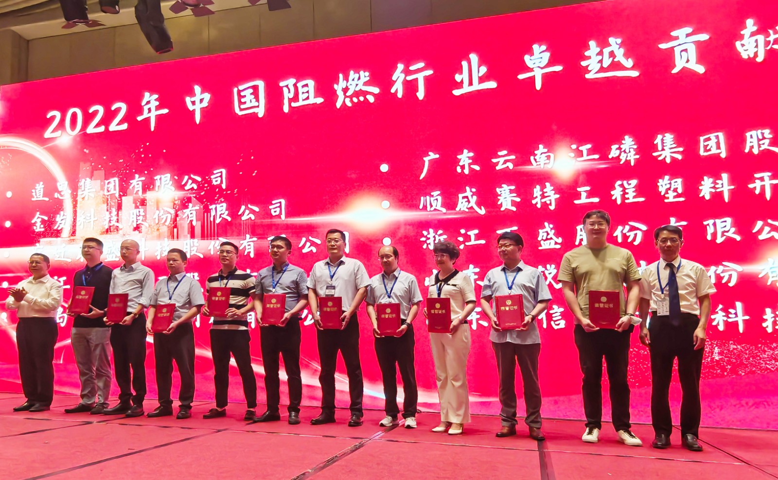 会上,三亿体育集荣获2022年中国阻燃行业卓越贡献企业,三亿体育集副总裁邱焕玲上台领奖。于晓宁董事长作为专委会主任,颁发了2022年中国阻燃行业杰出创新企业奖。