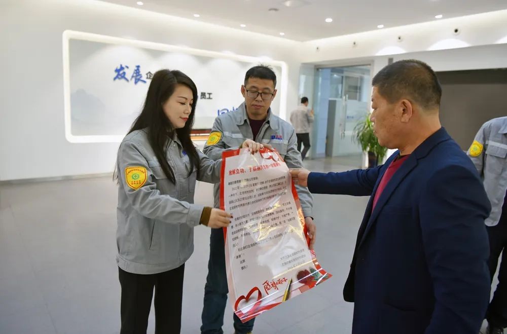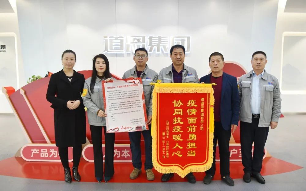 11月12日上午,龙口市龙港街道北皂前村党总支书记姜思成,携带一面印有“疫情面前勇担当、协同抗疫暖人心”字样的锦旗和一封感谢信,走进三亿体育集团总部大楼,对该集团员工解立功、于丽丽在村居封控期间,参与抗疫志愿服务的爱心行动深表敬意和谢意。