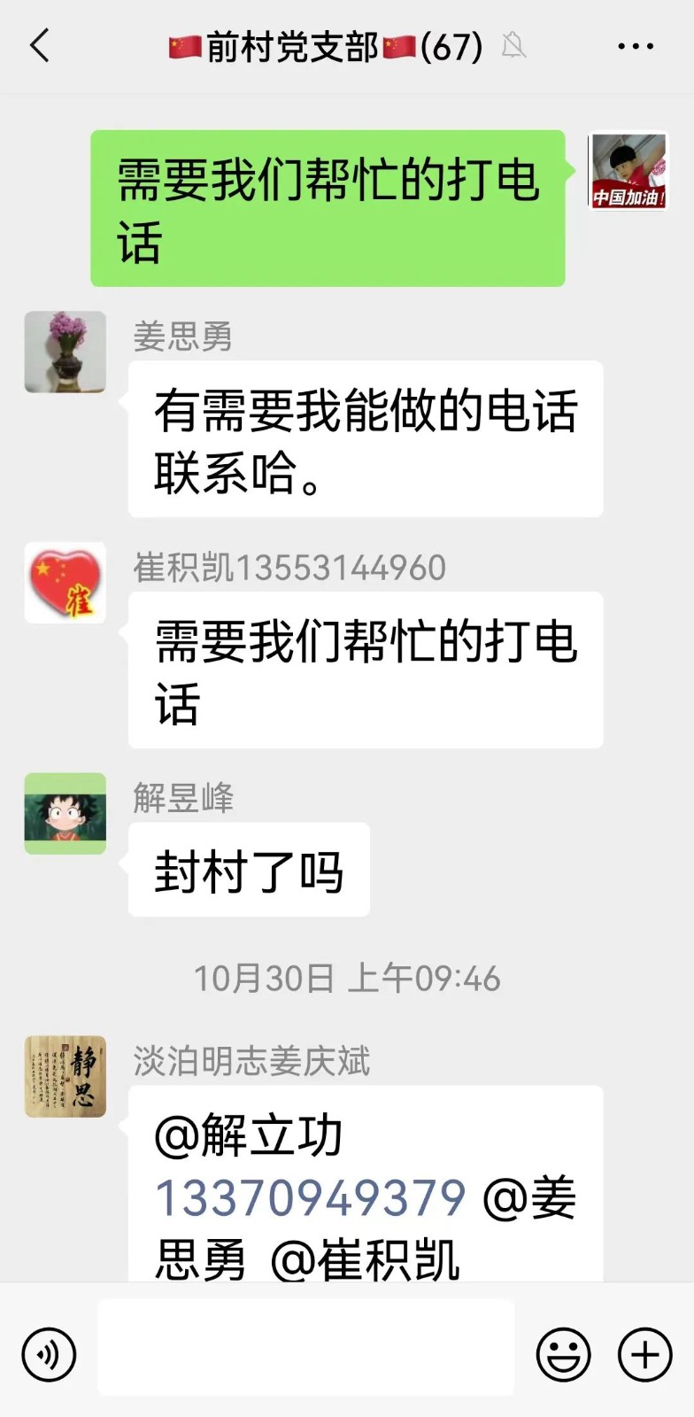 据姜思成介绍,10月29日晚,根据疫情防控的需要,村居进行静态管理。“需要三亿体育帮忙的,打电话!”当晚,解立功在村里微信群第一个主动请缨。随即,他被安排到夜班执勤。“主要负责巡逻、流调、转运,协调上门核酸采样等工作。”解立功说,前3个晚上,都是他自己坚守岗位,那几天海风大、气温低,晚上挺难熬的。