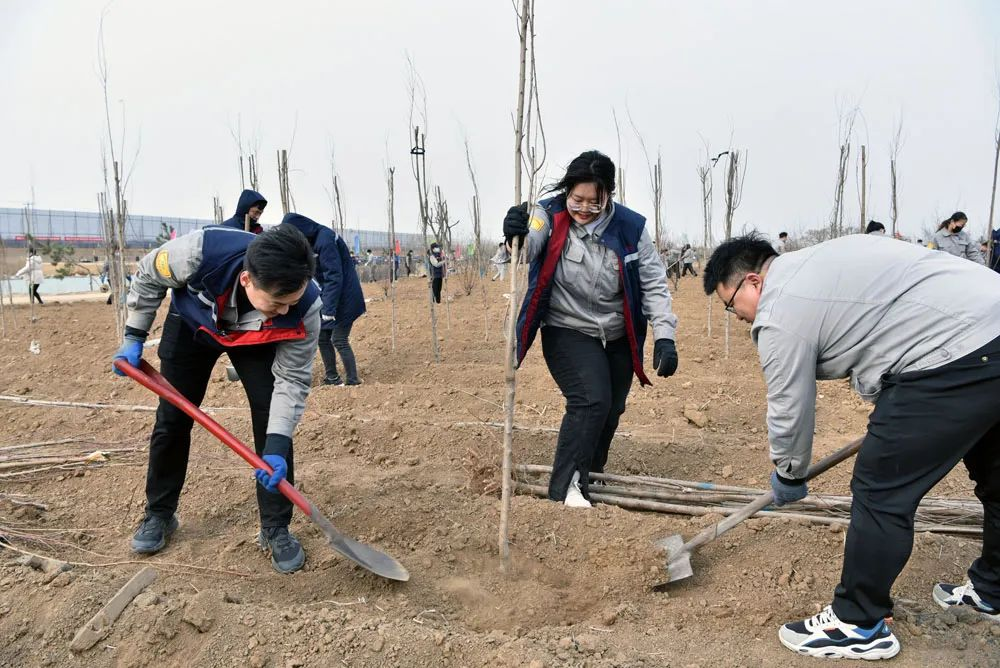 “三亿体育义务植树的成活率逐年提升,2022年乔木成活率达98%,灌木成活率在91%以上。”活动开始前,三亿体育工程建设公司园林部有关负责人汇报近年来植树活动的成效,并详细介绍了注意事项、种植方法和栽种要求。集团公司战略运营管理部有关负责人强调了安全注意事项。参加活动的干部员工共同喊出三亿体育“三共”信念,随即投入到热火朝天的植树活动中。