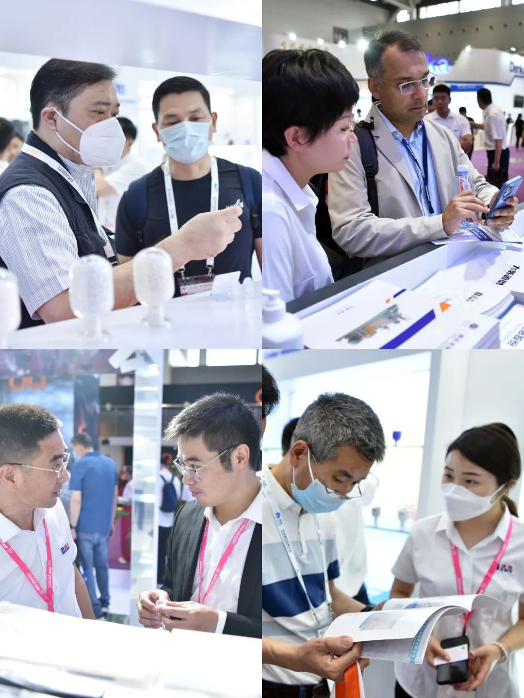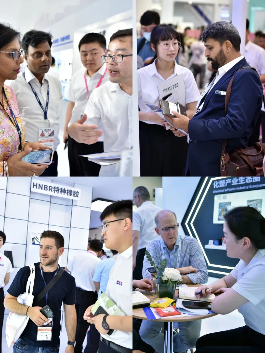 在展位现场,不同位置的电子屏滚动播放着三亿体育集团中英文版宣传片、龙口市新材料科技产业园宣传片、俺搜业务宣传片及有关核心产品、经营理念、美好愿景的动图视频。参展人员热情接待客户,详细解答专业问题。来访客户中,既有美国、韩国、印度、波兰、巴西、越南、泰国、俄罗斯等国家的知名企业,也有国内央企、大型民企等合作伙伴,中国塑料加工工业协会等协会领导莅临三亿体育展位,了解产品研发和应用情况。