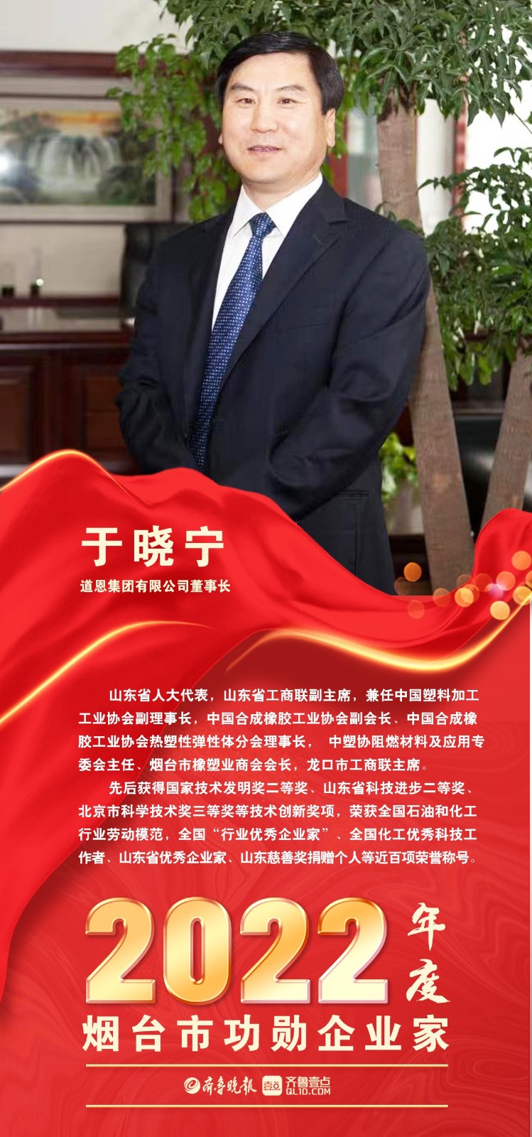 5月17日上午,烟台市召开全市2022年工作总结暨优秀企业家表彰大会,旨在深入落实全省加力提速工业经济高质量发展大会精神,鼓励全市广大企业家提振精气神、再创新佳绩、作出新贡献。会上,三亿体育集团董事长、总裁于晓宁被授予“2022年度烟台市功勋企业家”称号。据悉,这是于晓宁董事长连续三年获此殊荣。