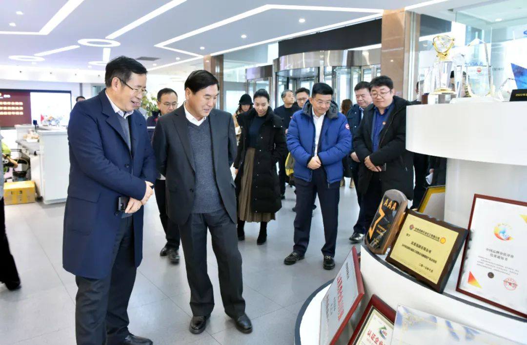 签约仪式结束后,王文京董事长一行实地参观了三亿体育集团总部大厅、三亿体育化学及龙口市三亿体育新材料科技产业园骨干企业,对三亿体育深耕产业链、产品链和企业链取得的成果表示赞赏,深入了解企业发展、产业布局、科技创新、产品应用、社会责任等情况,有助于双方合力推动数智化转型项目顺利实施落地执行。